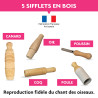 Avec une sélection d'appeaux reproduisant les sons authentiques de la poule, du coq, du poussin, de l’oie, et du canard, ce coffret invite à une redécouverte joyeuse des sons familiers de la campagne. Chaque appeau, fabriqué à partir de bois de qualité et fini avec un vernis alimentaire sans danger, est un pont vers la nature et ses merveilles acoustiques.